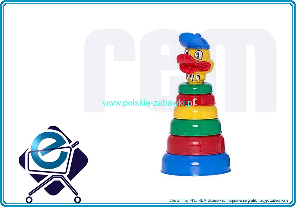 | PIRAMIDKA KACZOR Wesoła układanka dla najmłodszych dzieci - już od 10 miesiąca życia. Ta zabawka edukacyjna uczy wyboru elementów oraz wyznaczania konsekwentnych serii. Składa się z kolorowych krążków oraz podstawki z patyczkiem. Zadaniem układającego jest wybór elementów i ułożenie postaci kaczorka. Układanka rozwija zdolności manualne. Zestaw jest bardzo kolorowy oraz zawiera wesoły akcent - główkę kaczorka. |