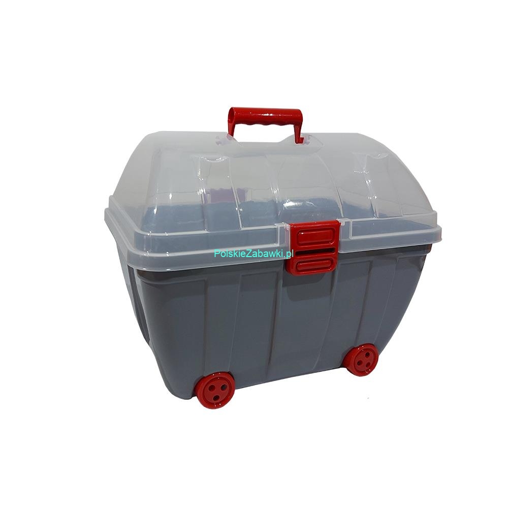 POJEMNIK KUFEREK z kółkami na zabawki C. SZARY